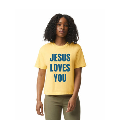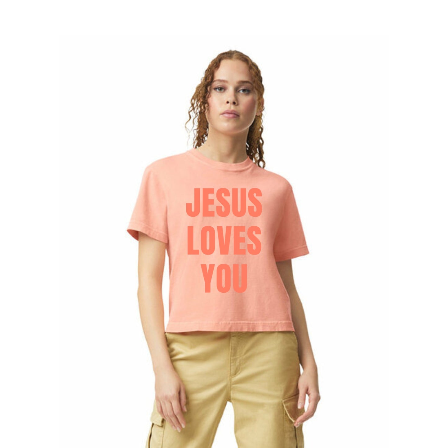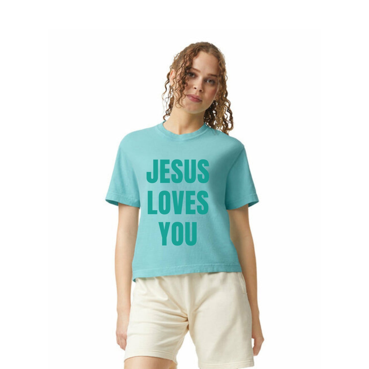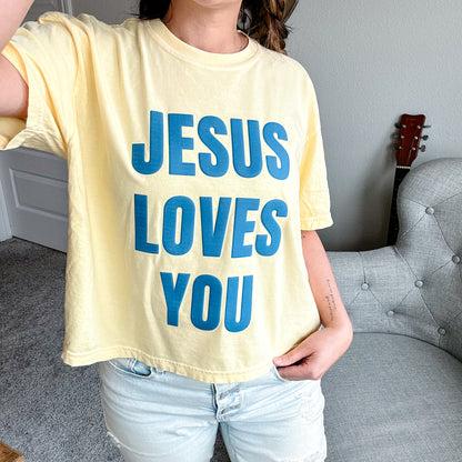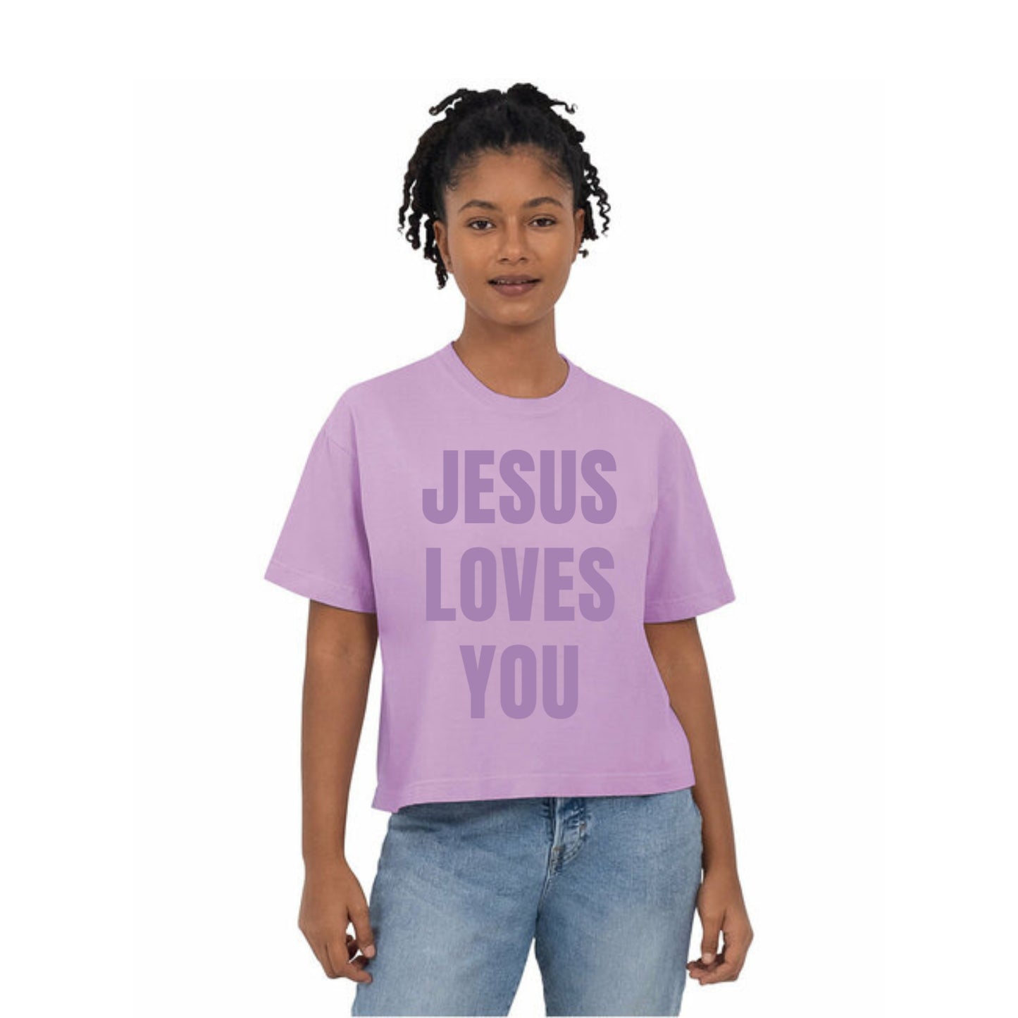 Our best seller Jesus Loves You tee is now in CROPPED! You asked and we delivered! Designed with quality materials and a comfortable fit, this tee is perfect for everyday wear. Spread love and positivity with this stylish and meaningful shirt.